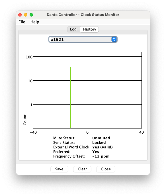 - Go to Dante Controller Network View > Clock Status