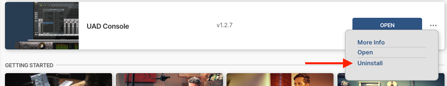 - Click the ••• icon on the right side of the UAD Console entry and select Uninstall.